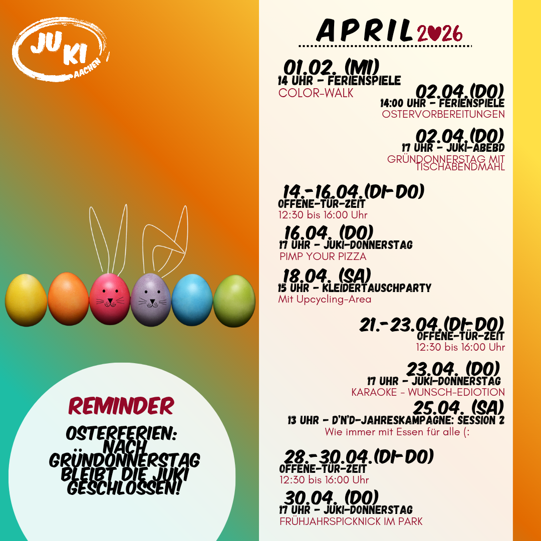 Hier ist unser April-Programm. Wir freuen uns auf Euch!